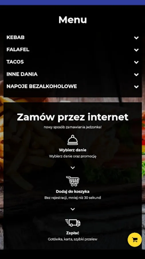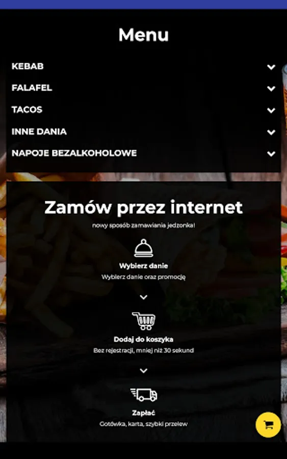 Application for ordering food from the Ankara Kebab restaurant in Katowice.
