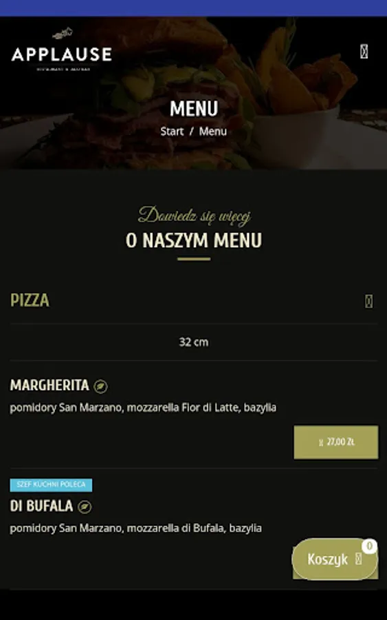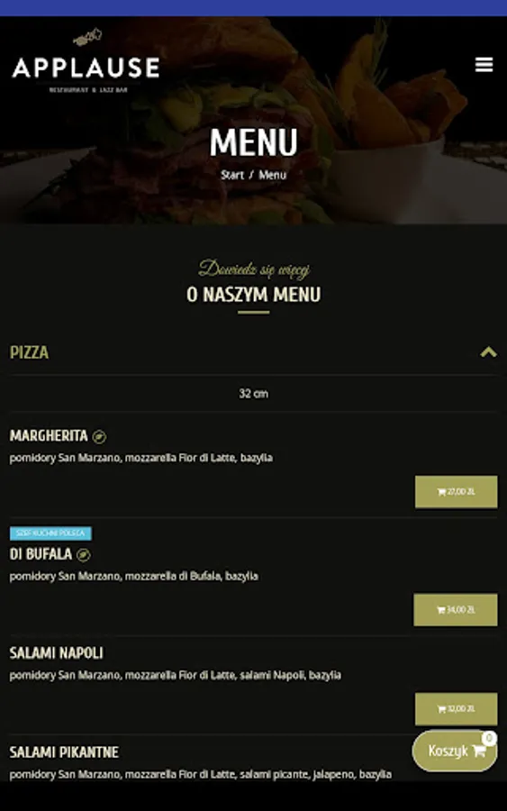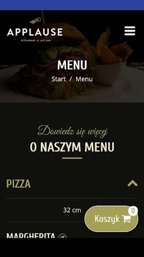 An application for ordering food from the Applause Restaurant & Jazz Bar restaurant in Kielce.