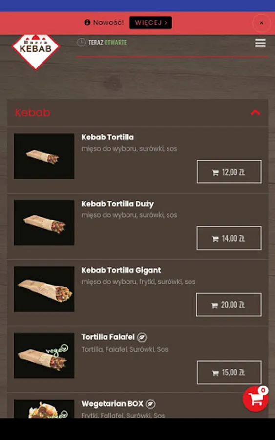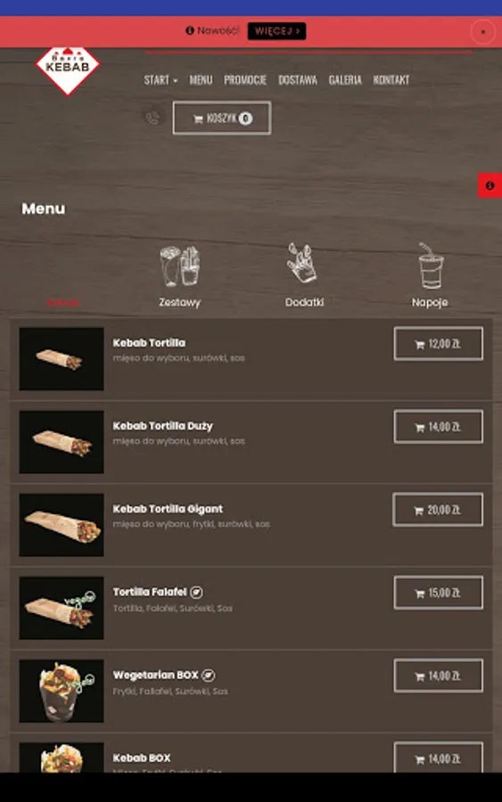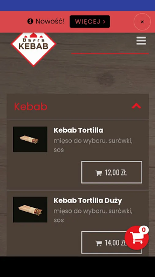 Application for ordering food from the Bafra Kebab restaurant in the town of Targowisko.