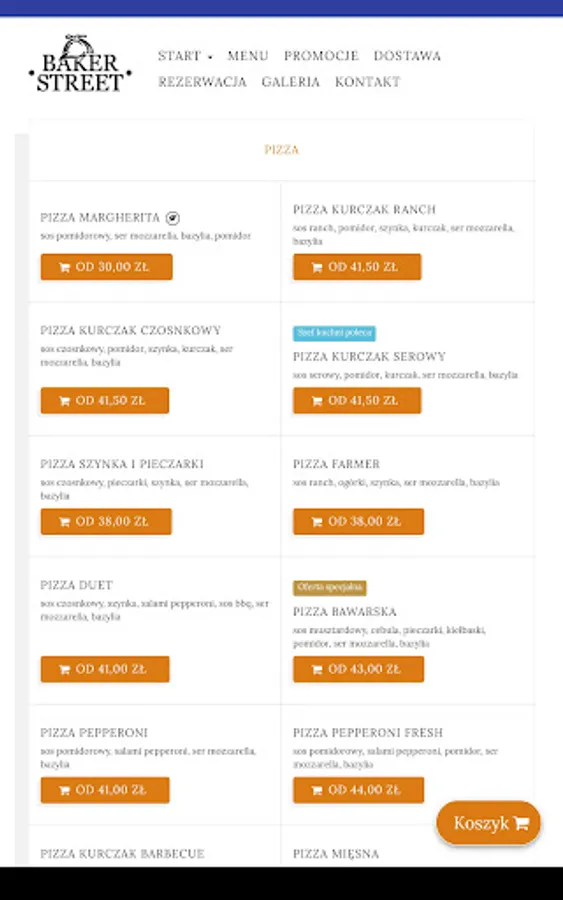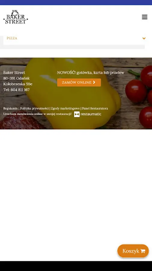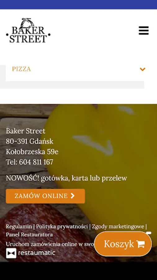 Application for ordering food from the Baker Street restaurant in Gdańsk.