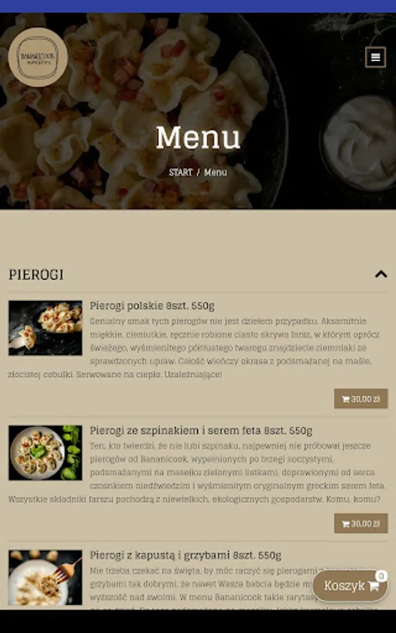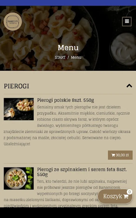 An application for ordering food from the Bananicook restaurant in Wrocław.