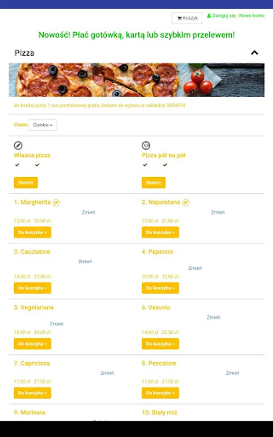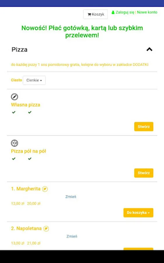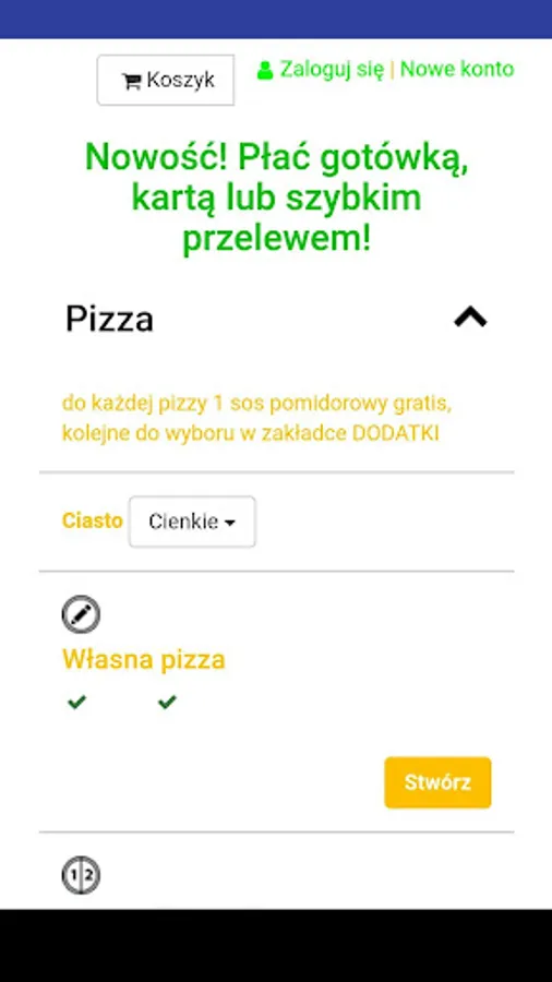 Application for ordering food from the Piwiarnia Miś restaurant in Chełm.