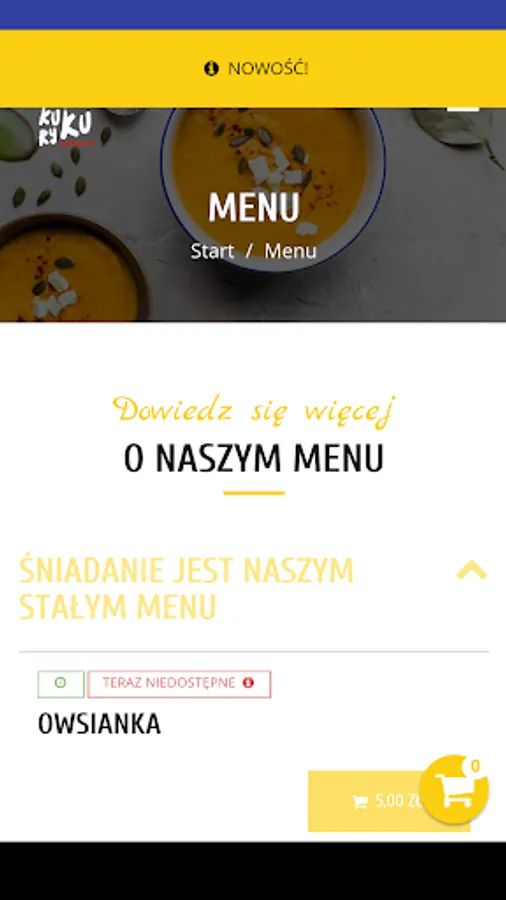 Application for ordering food from the Bar Mleczny Kukuryku restaurant in Katowice.