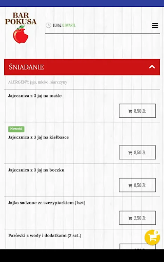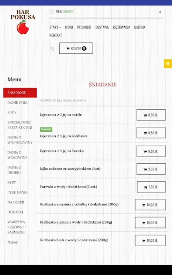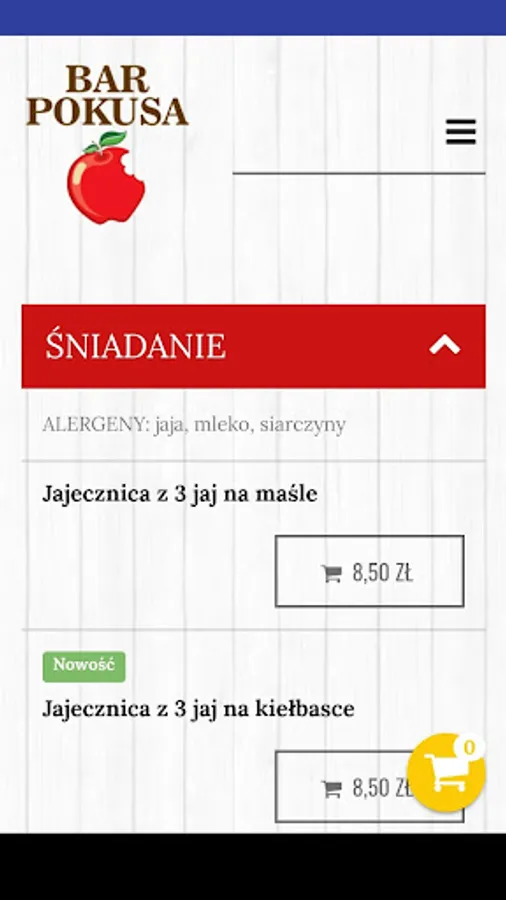 Application for ordering food from the Bar Pokusa restaurant in Radom.