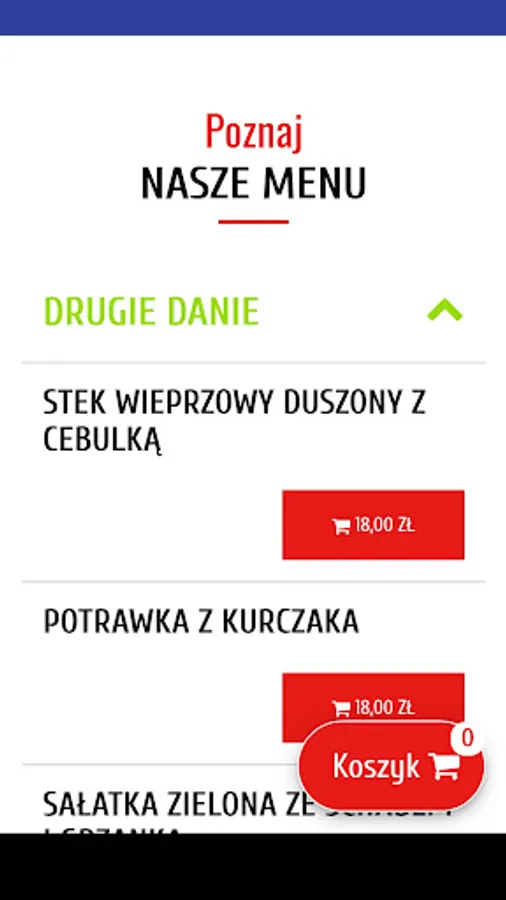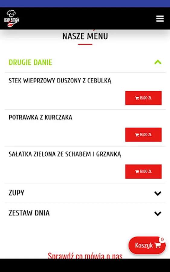 Application for ordering food from the Bar Smak restaurant in Żary.