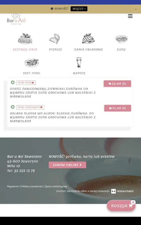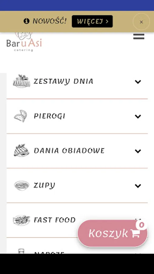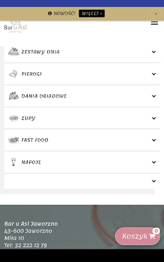 Application for ordering food from Bar u Asi restaurant in Jaworzno.