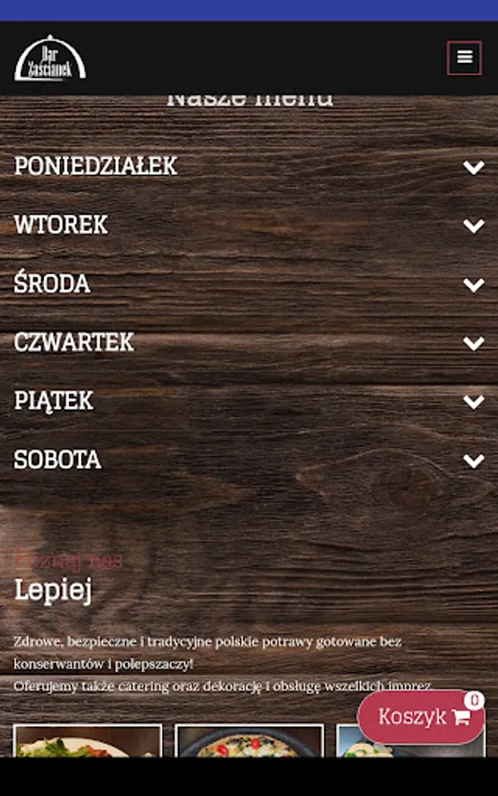 Application for ordering food from Bar Zaścianek restaurant in Piła.