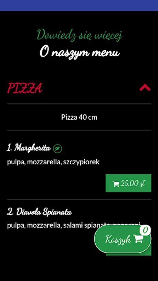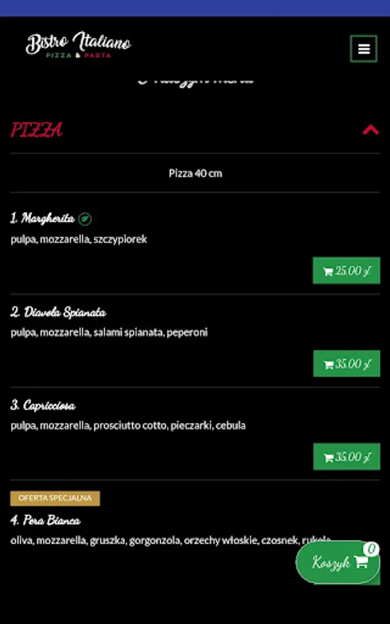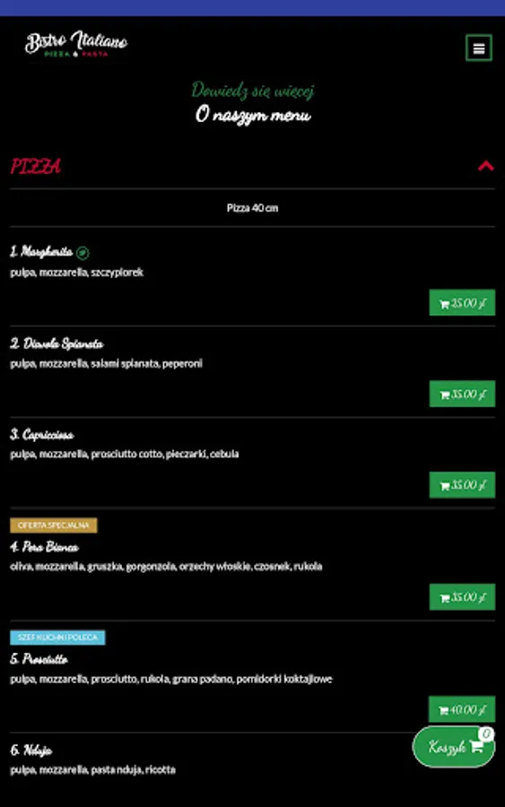 Application for ordering food from the BISTRO ITALIANA restaurant in ZABRZE.