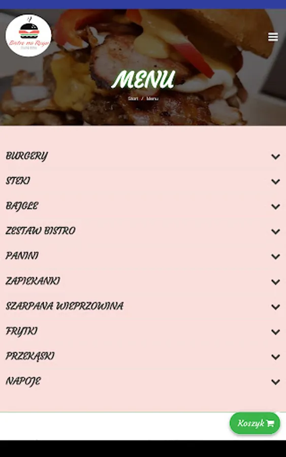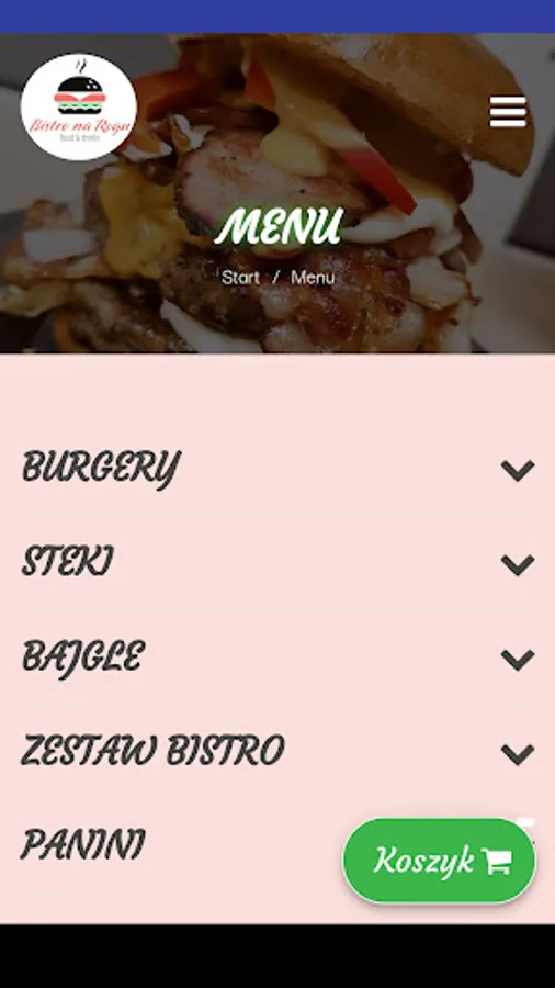 An application for ordering food from the Bistro na corner restaurant in Warka.