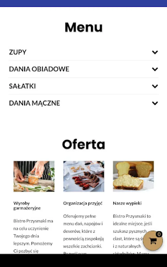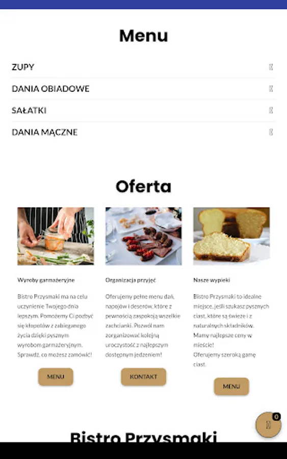 An application for ordering food from the Bistro Przysmaki restaurant in Lublin.