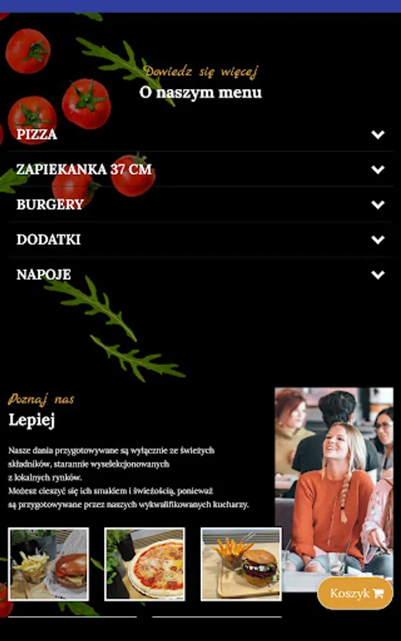 An application for ordering food from the Bistro Przystanek Smaków restaurant in Rzeszów.
