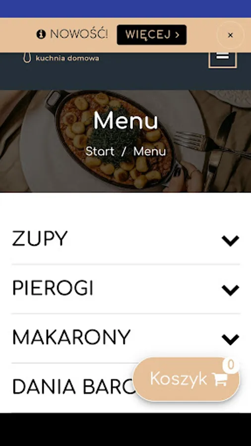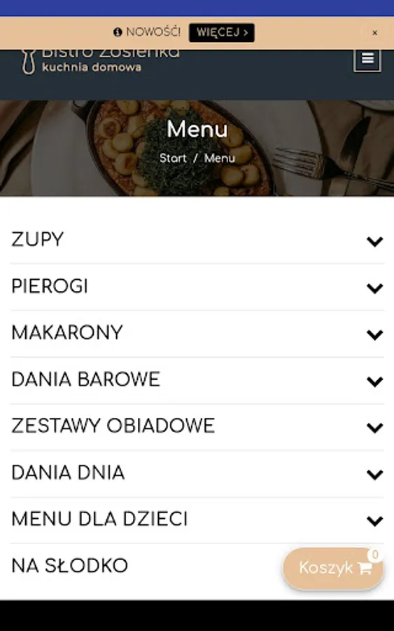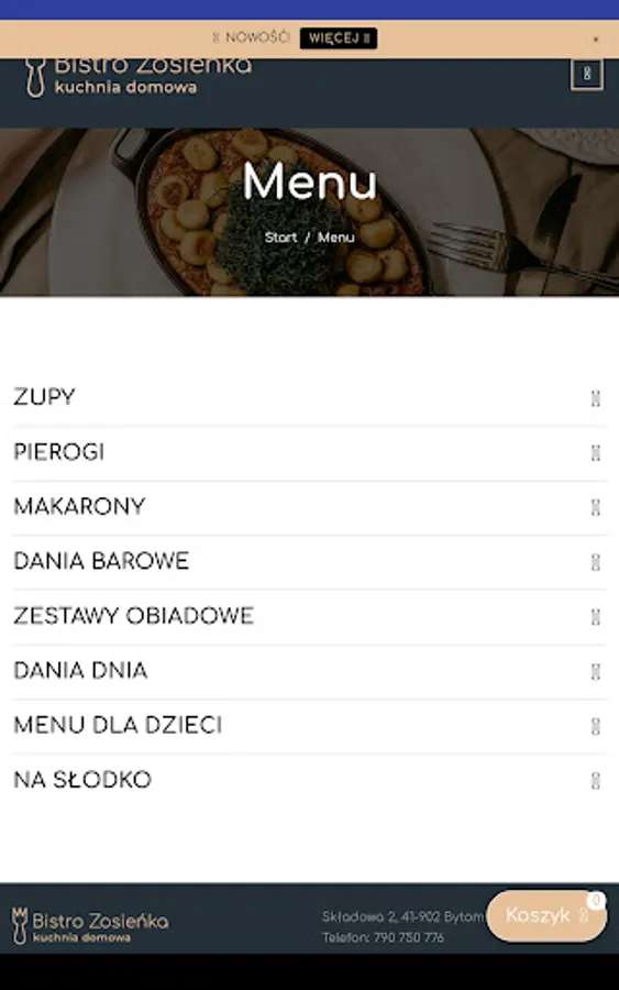 An application for ordering food from the Bistro Zosieńka restaurant in Bytom.