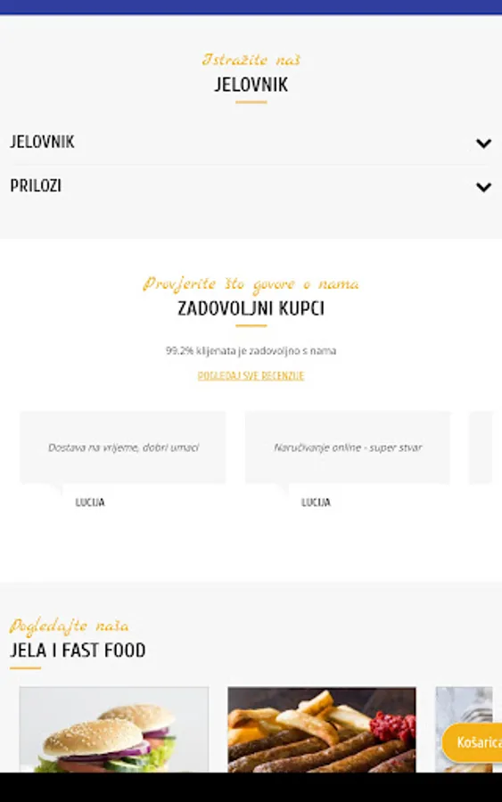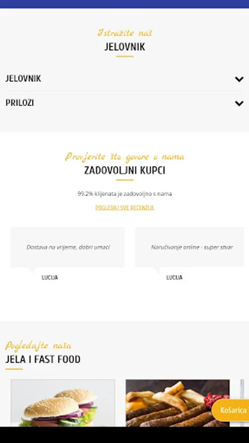 Mobile application for naručivanje hrane direktno iz restorana Budi Gurman.