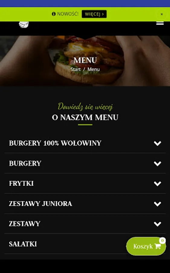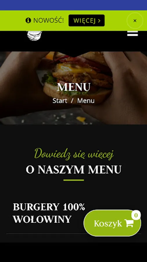 Application for ordering food from the Burgerownia Na Rogu restaurant in Krotoszyn.