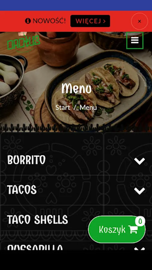 Application for ordering food from Cactus Mexican Street Food restaurant in Bydgoszcz.