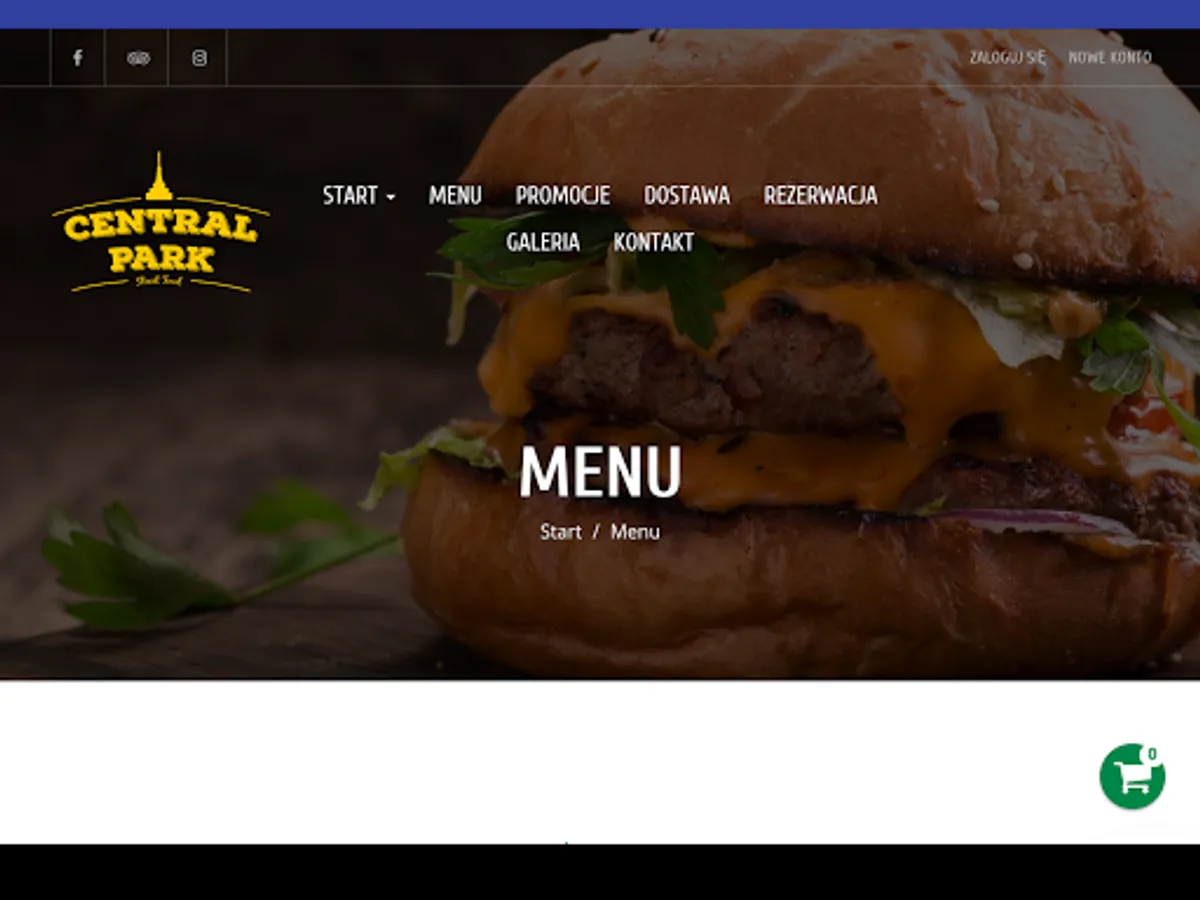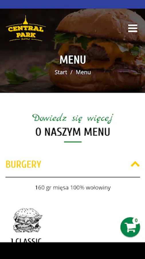 Application for ordering food from the Central Park Bar restaurant in Konin.