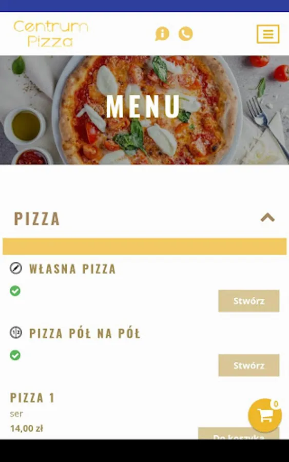 Application for ordering food from the Centrum Pizza restaurant in Zambrów.
