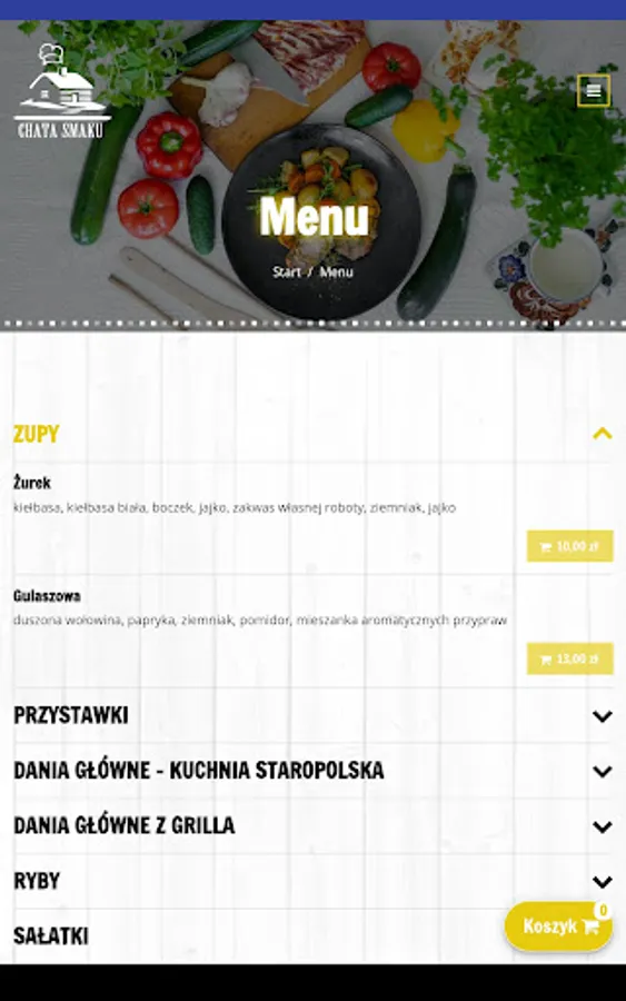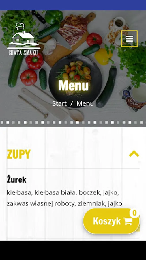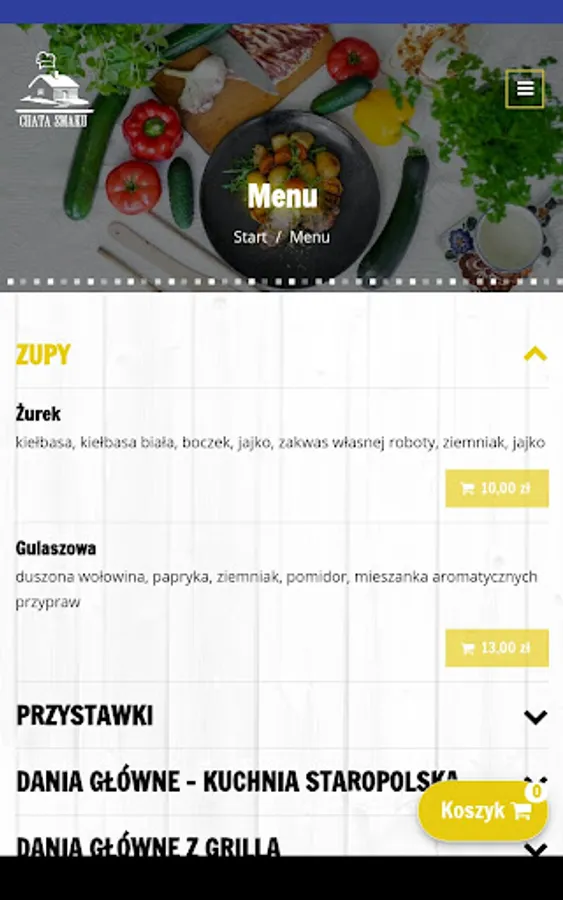 Application for ordering food from the Chata Smaku restaurant in Leszno.