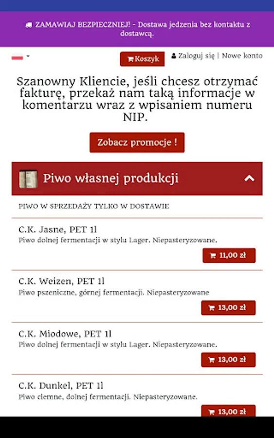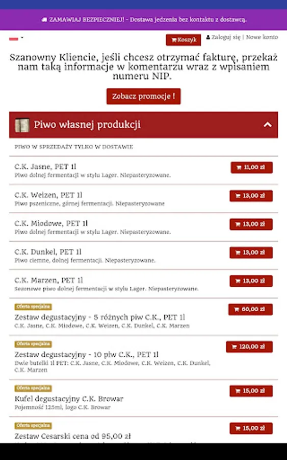 Application for ordering food from a restaurant C.K. Brewery in the city of Kraków.