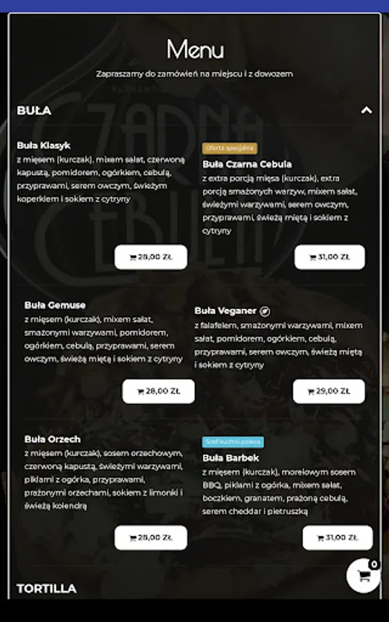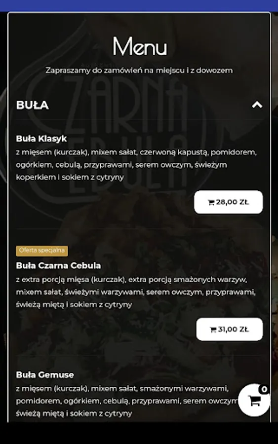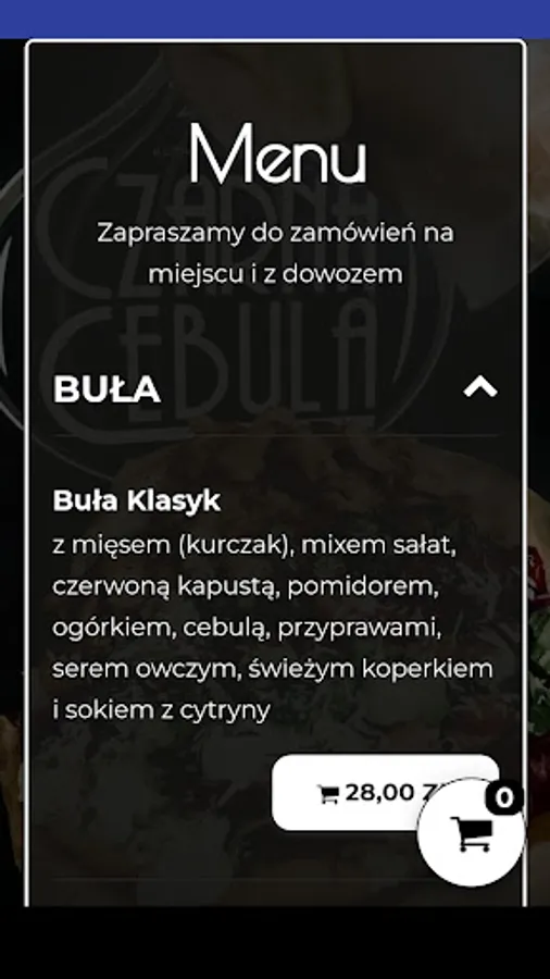 An application for ordering food from the Czarna Cebula restaurant in Wrocław.