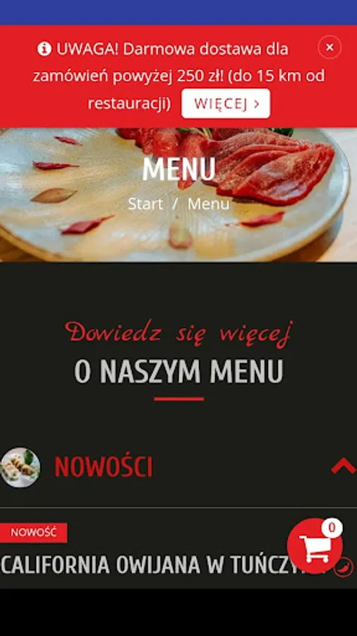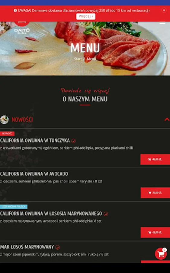 Application for ordering food from the Daito Sushi restaurant in Czeladź.