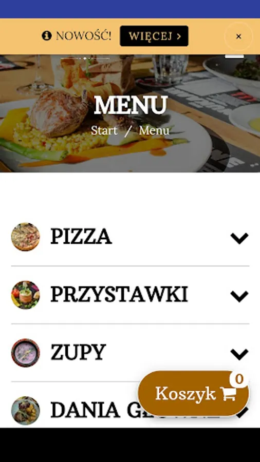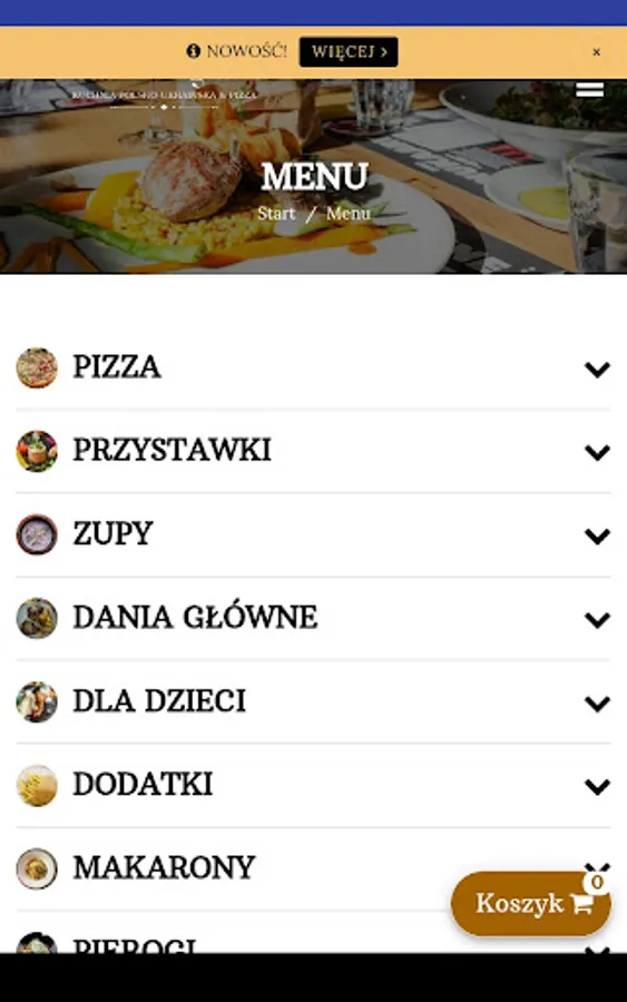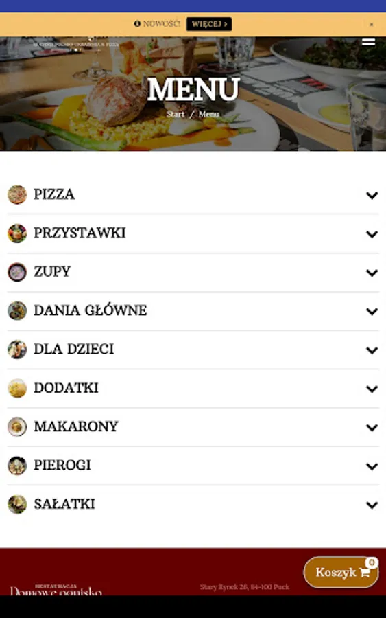 Application for ordering food from the Domowe Ognisko restaurant in Puck.