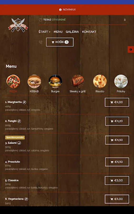Mobile application to order food directly from the restaurant Doner Kebab Handlová.