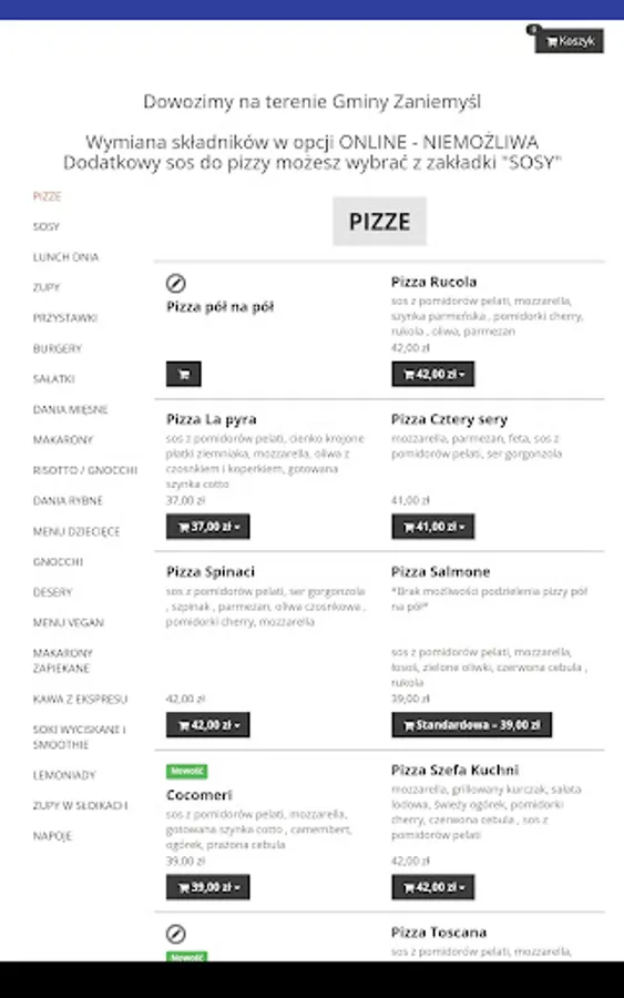 An application for ordering food from the Dwa Smaki restaurant in Zaniemyśl.