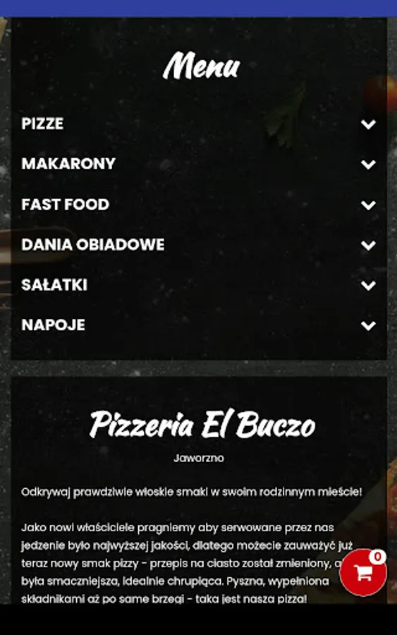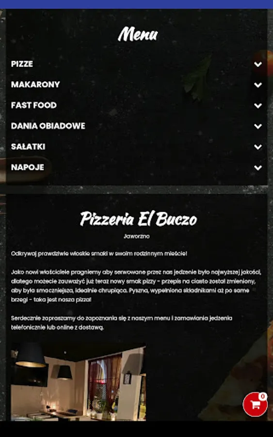 Application for ordering food from the El Buczo restaurant in Jaworzno.