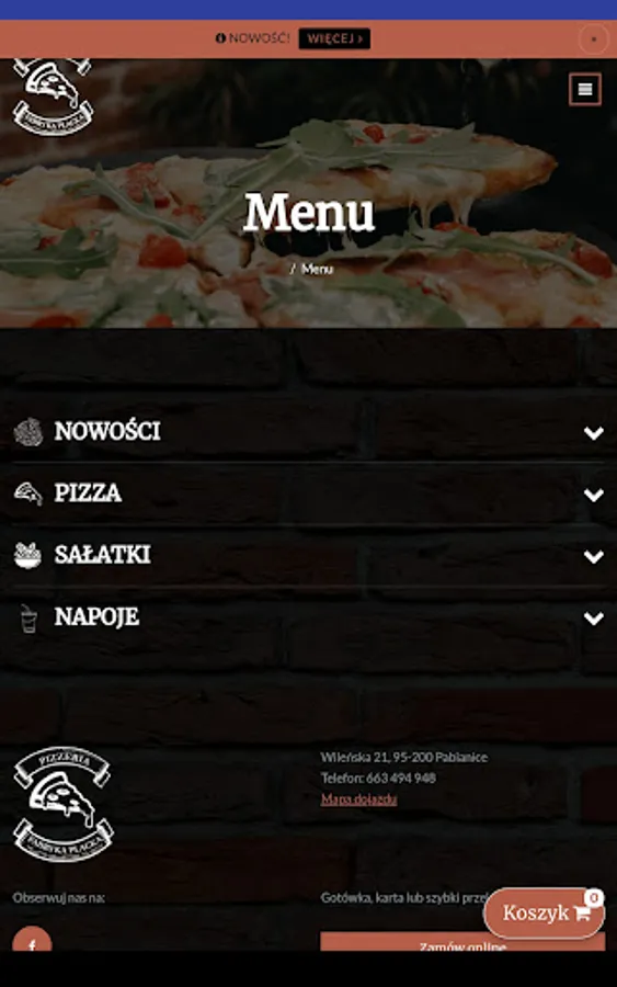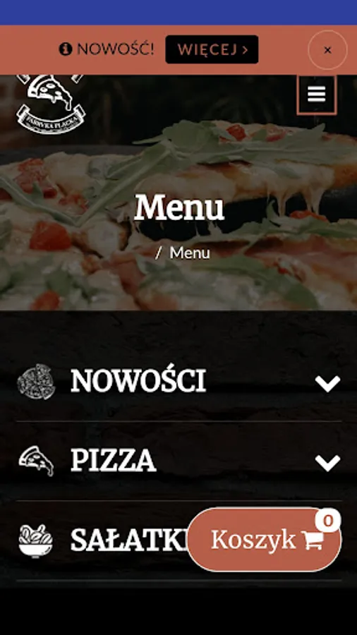 An application for ordering food from the Fabryka Placka restaurant in Pabianice.