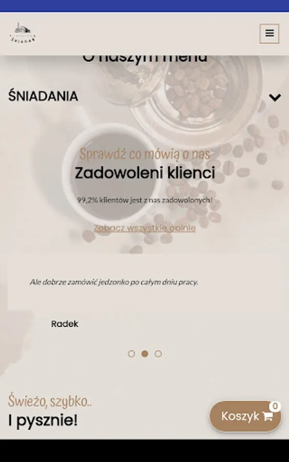 Application for ordering food from the Fabryka Śniadań restaurant in Białystok.