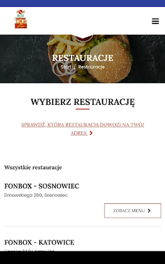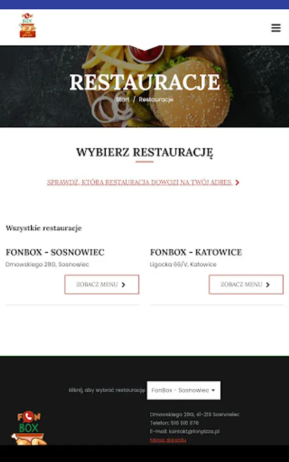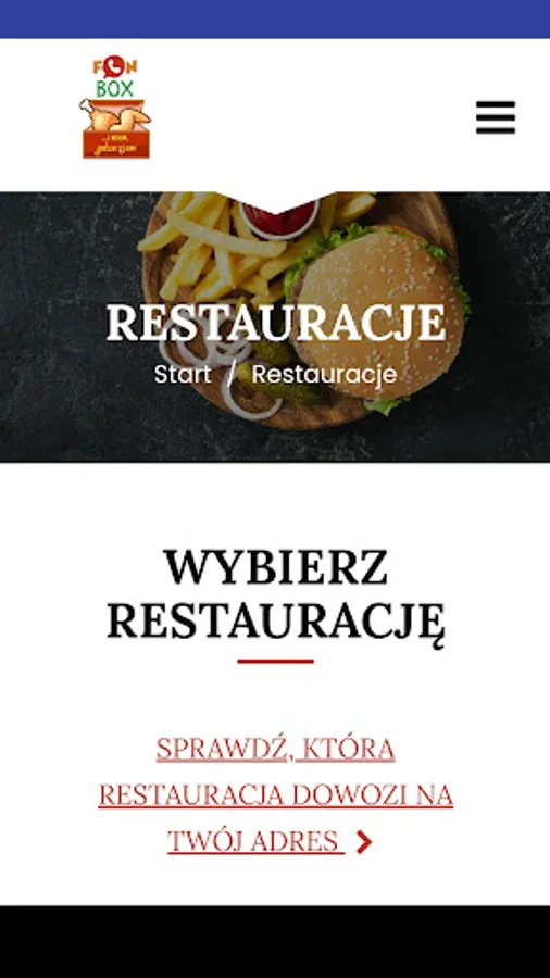 Application for ordering food from the FonBox restaurant in Sosnowiec / Katowice.