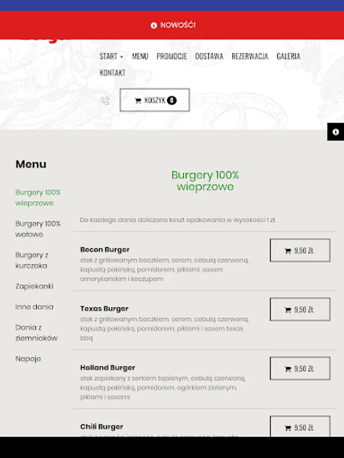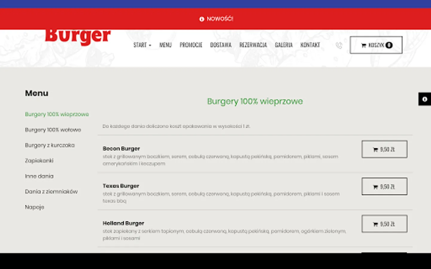 Application for ordering food from the Freshburger restaurant in Gliwice.