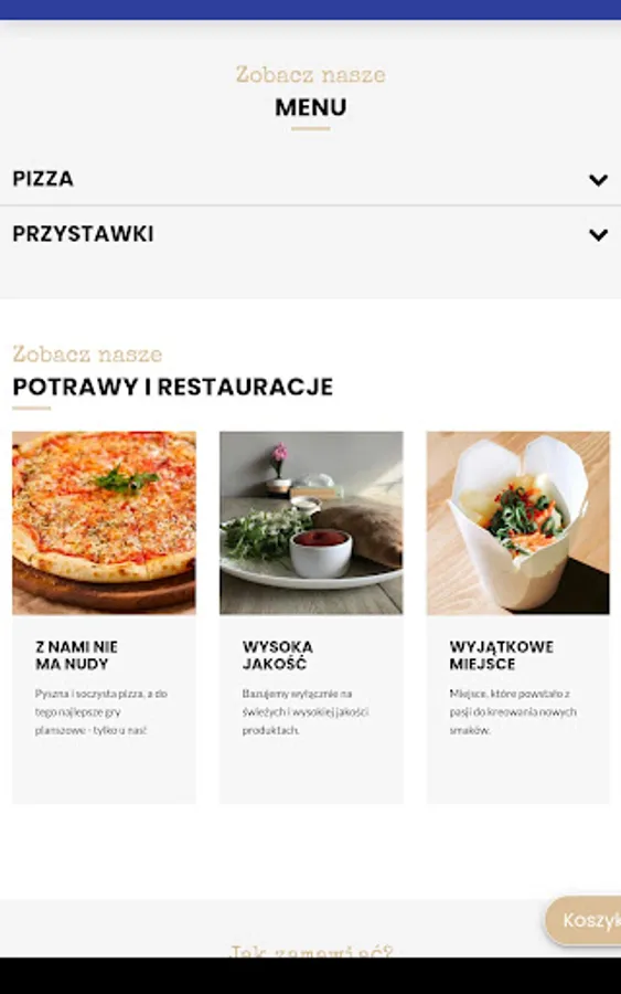 Application for ordering food from the Game Pizza restaurant in Ostrów Wielkopolski.