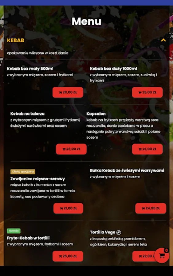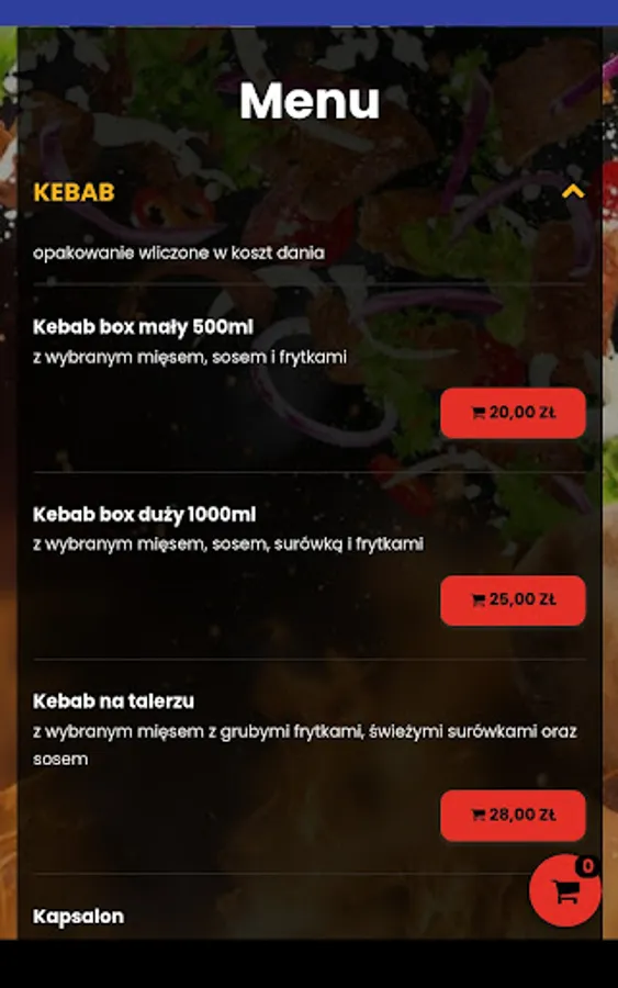 Application for ordering food from the Gastrofaza restaurant in Lubin.
