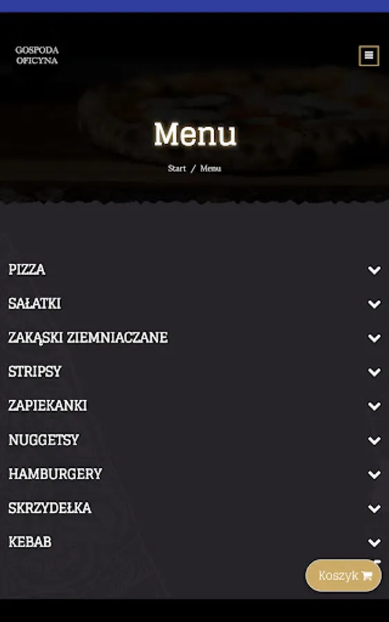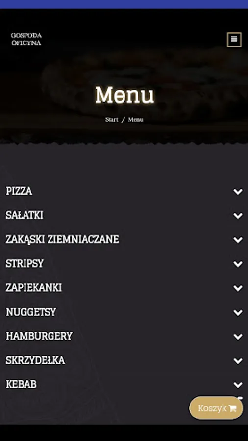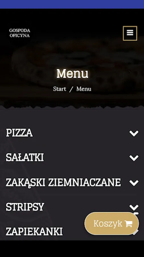 An application for ordering food from the Gospoda Oficyna restaurant in Miechów-Charsznica.