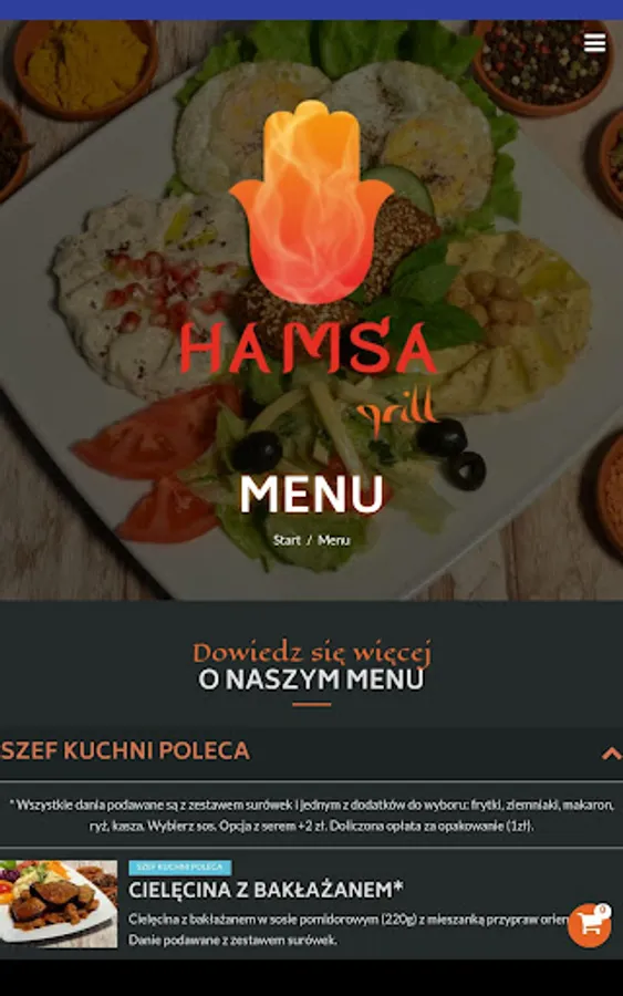 Application for ordering food from the Hamsa Grill restaurant in Warsaw.