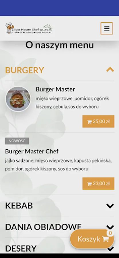 Application for ordering food from the Igor Master Chef restaurant in Drobin.