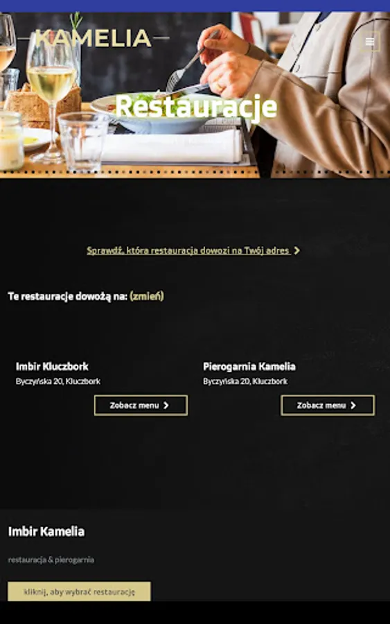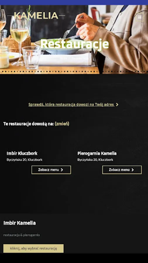 An application for ordering food from the Imbir and Kamelia restaurants in Kluczbork.