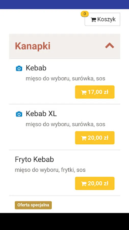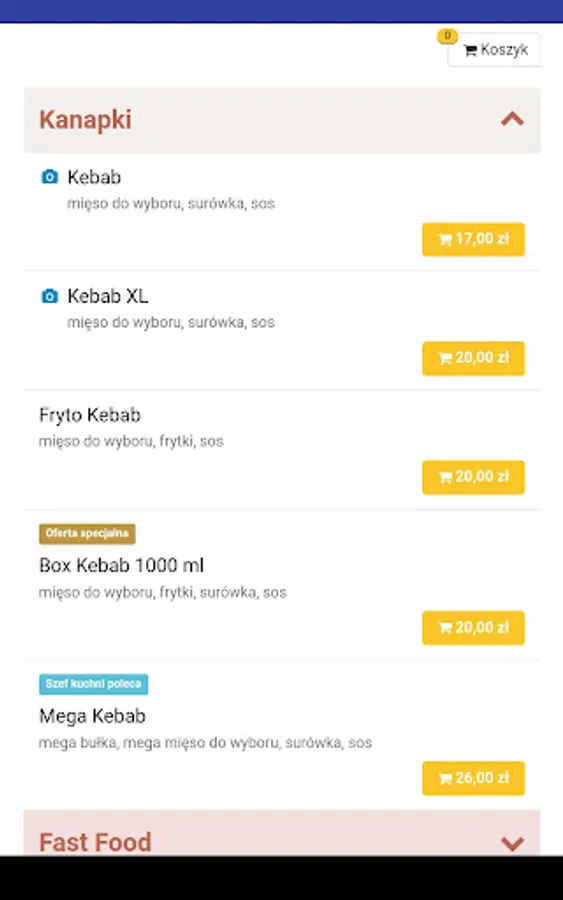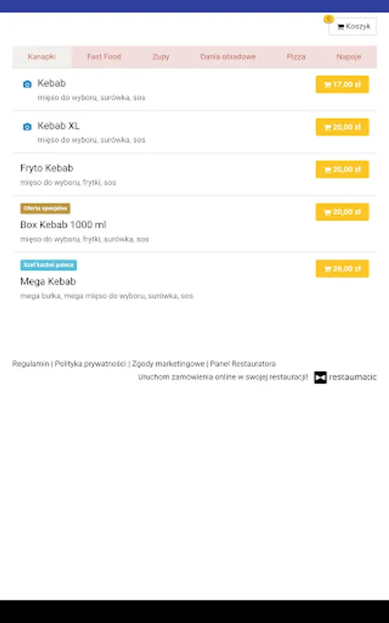 An application for ordering food from the Imbir Kebab & Pizza restaurant in Marki.