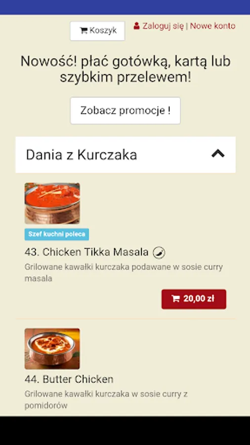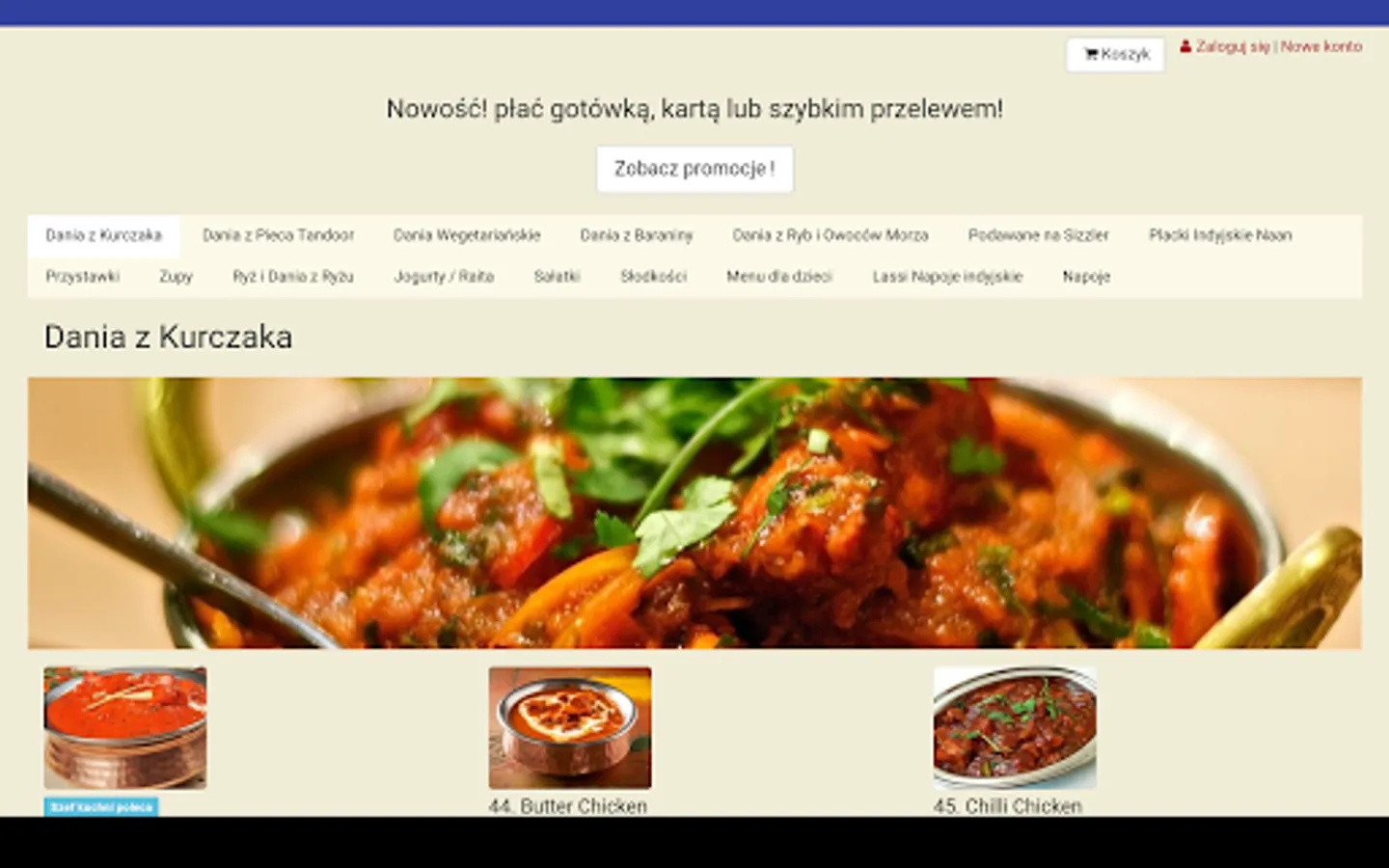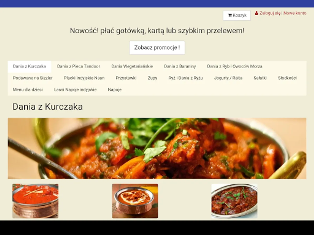 Application for ordering food from the Indian Curry restaurant in Częstochowa.