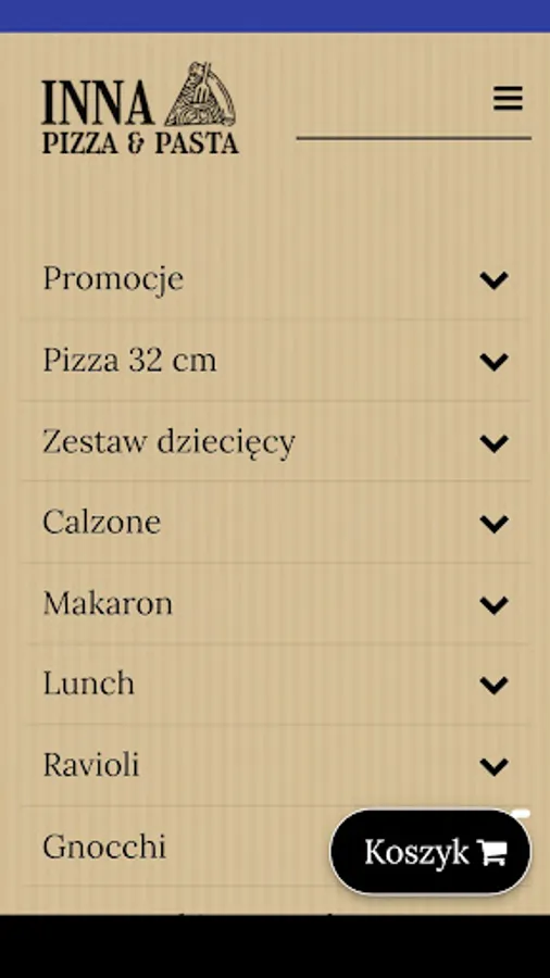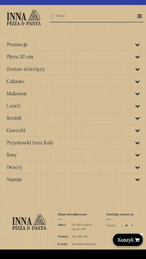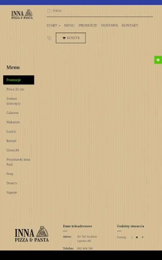 An application for ordering food from the Inna Pizza&Pasta restaurant in Kraków.