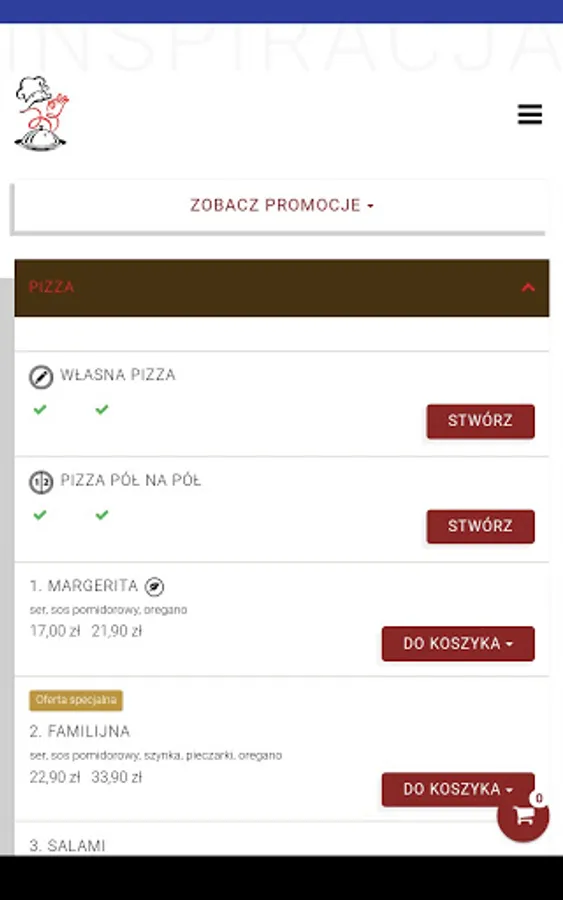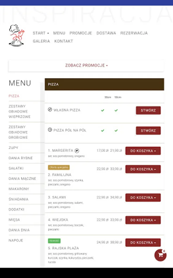 Application for ordering food from the restaurant Inspiracja Smaków Bistro in Brzeg.