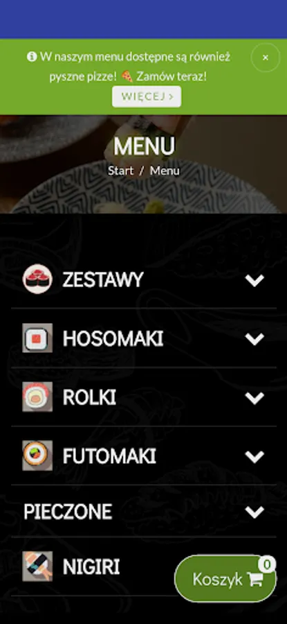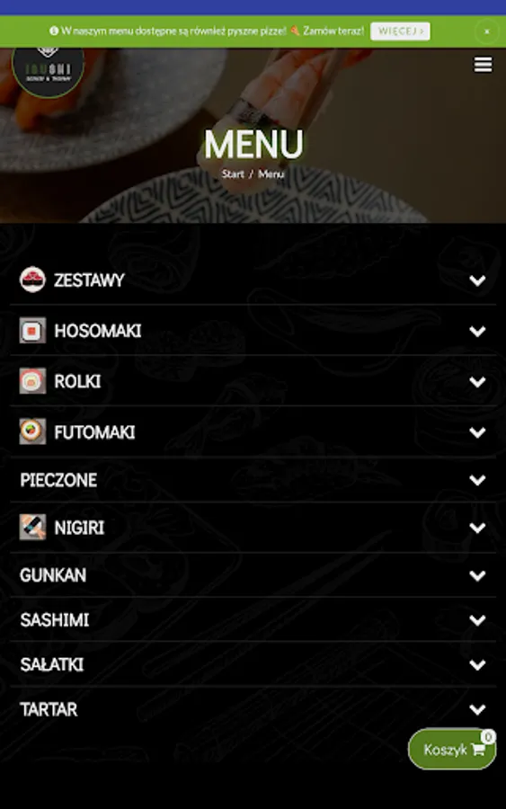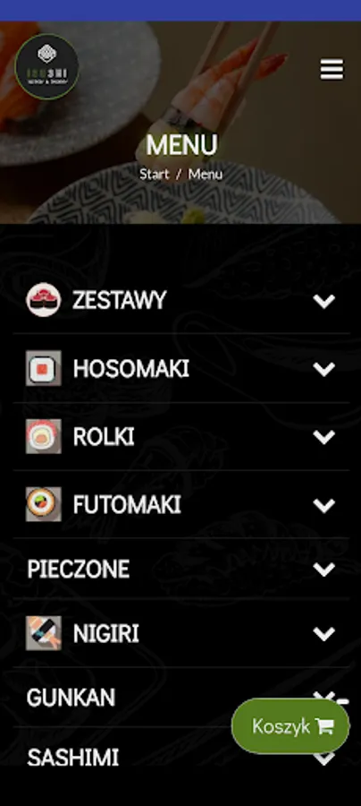 An application for ordering food from the ISUSHI restaurant in Poznań.