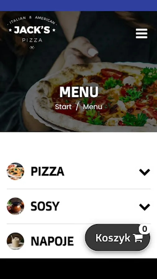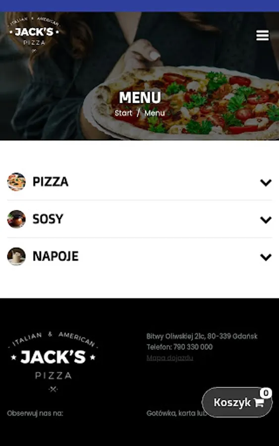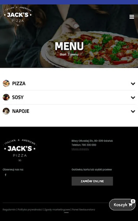Application for ordering food from Jack's Pizza restaurant in Gdańsk.
