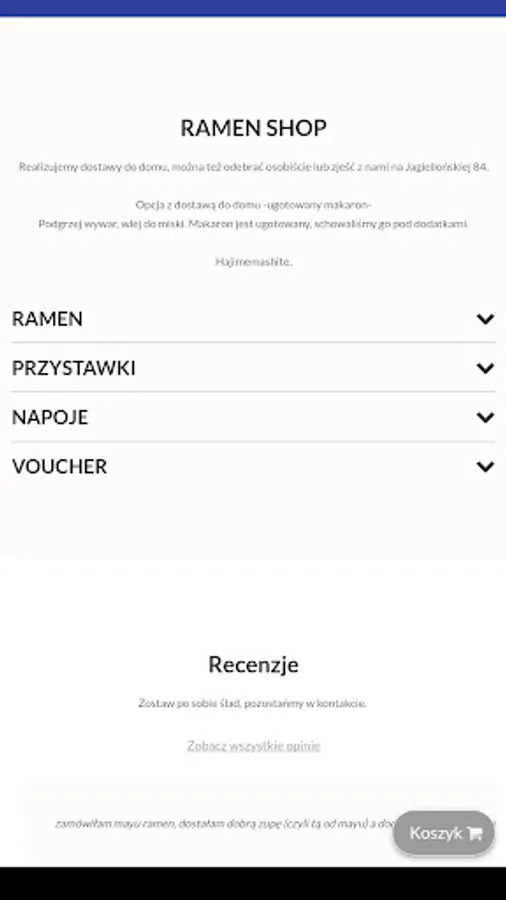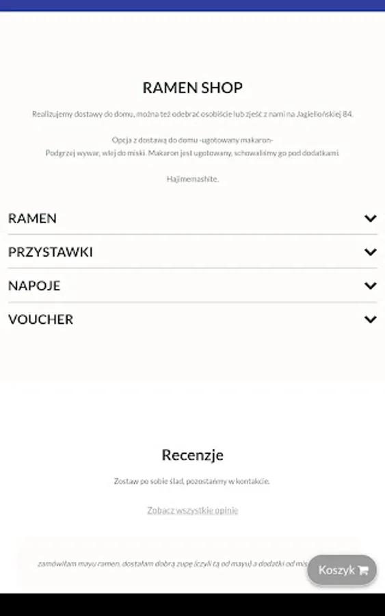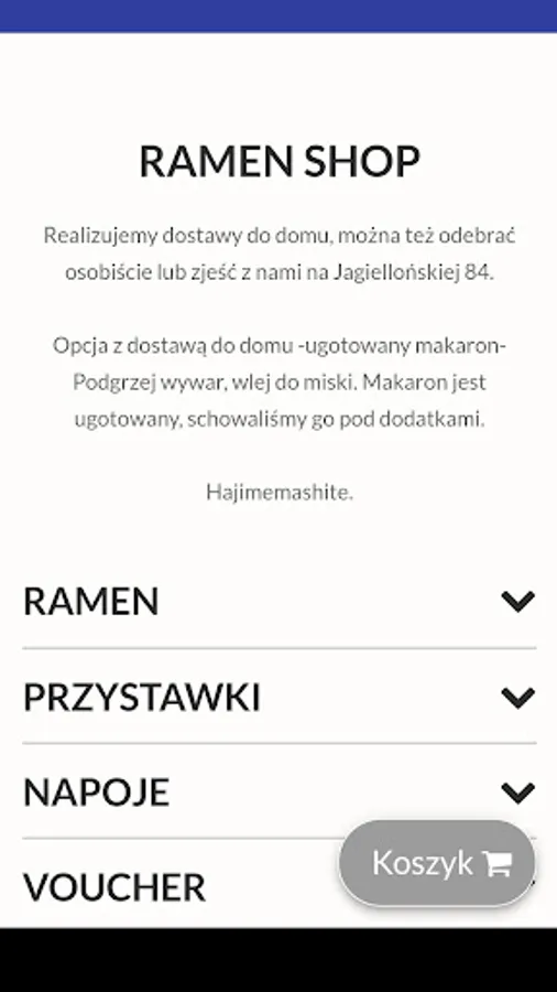 Application for ordering food from the Kabuki Ramen restaurant in Szczecin.