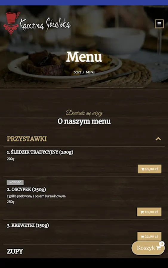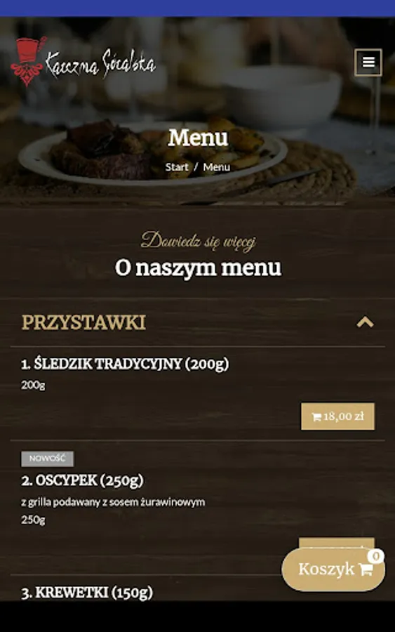 Application for ordering food from the restaurant Karczma Góralska in Wisznice