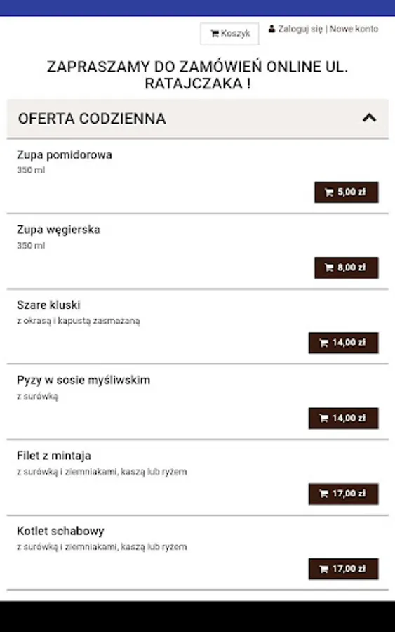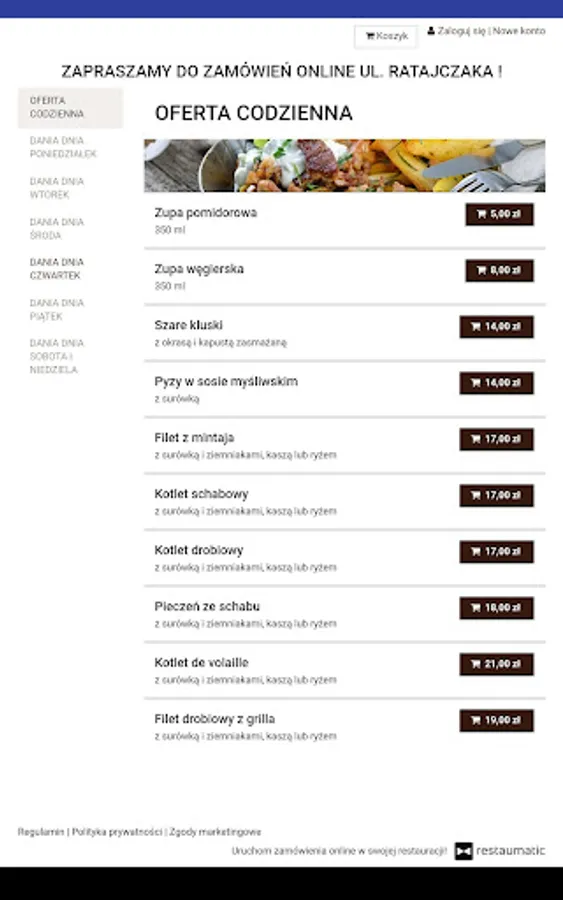 Application for ordering food from Karczma's restaurant at Grzegorz's in Poznań.