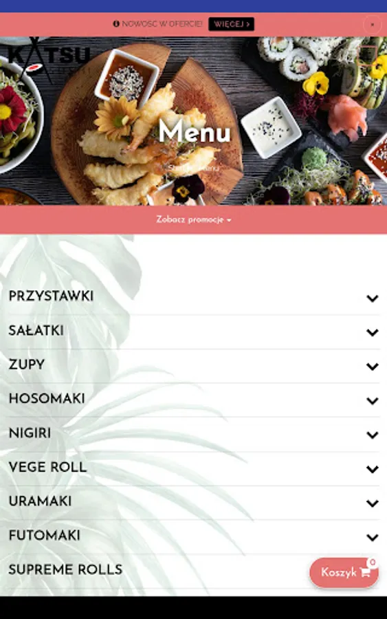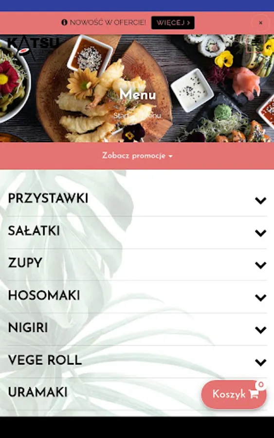 Application for ordering food from Katsu Sushi restaurant in Krakow.