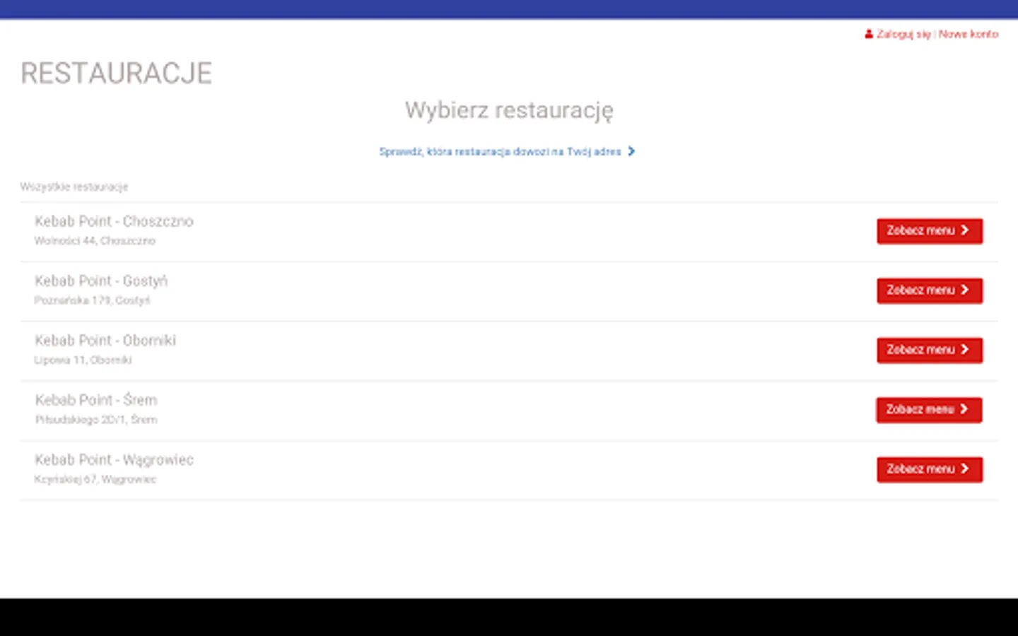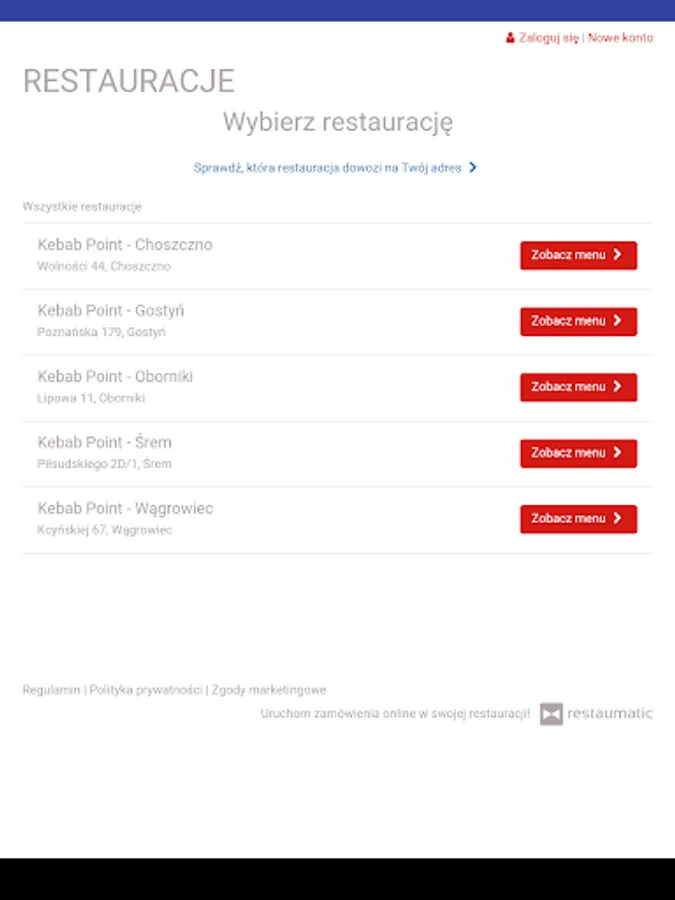 Application for ordering food from Kebab Point restaurants in Śrem, Oborniki, Choszczno, Gostyń, Wągrowiec.